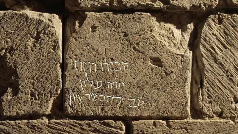 (Cette belle photographie montre le célèbre graffiti gravé sur les pierres de la Yéshiva médiévale de Rouen, où l'on peut lire : "הבּית הזה יהיה עליון - Que cette maison soit sublime")